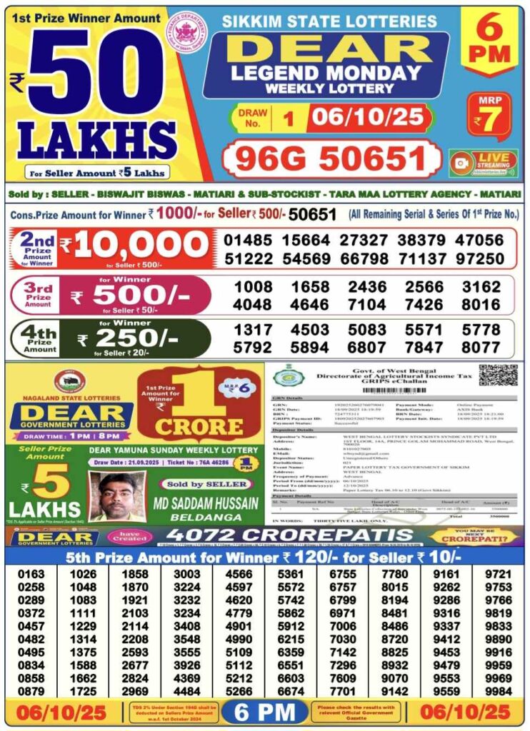 On this site you can download this Sikkim State Lottery Sambad Result between 1 pm and 1.15 pm in PDF format. Sikkim State Lottery 1 pm Lottery Ticket Price is Rs 6.lottery sambad lottery sambad lottery sambad lottery sambad