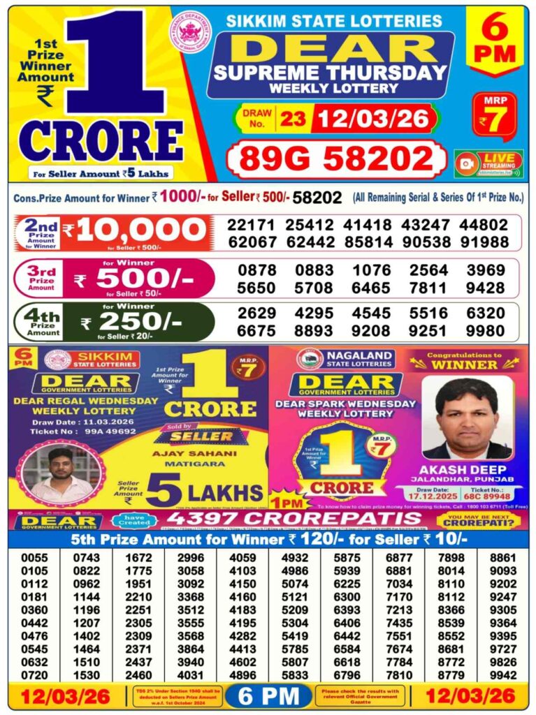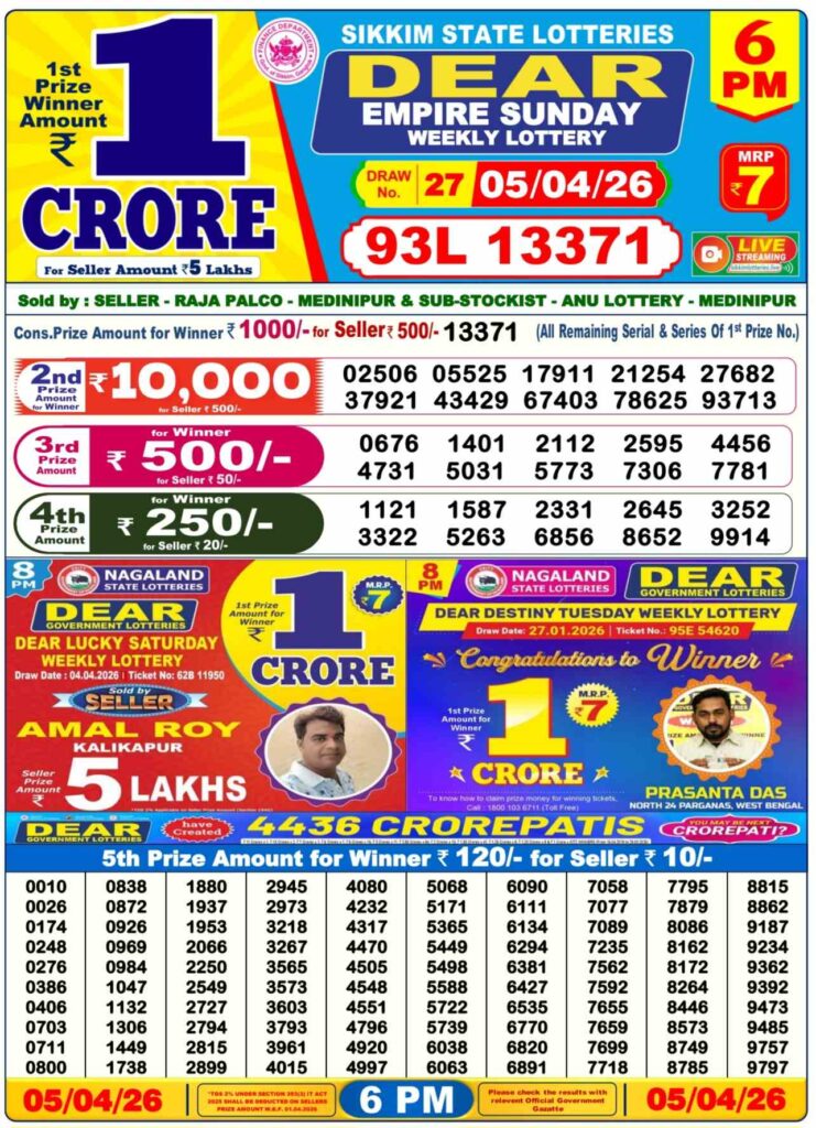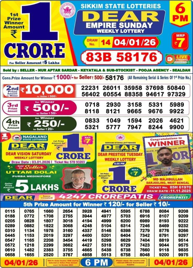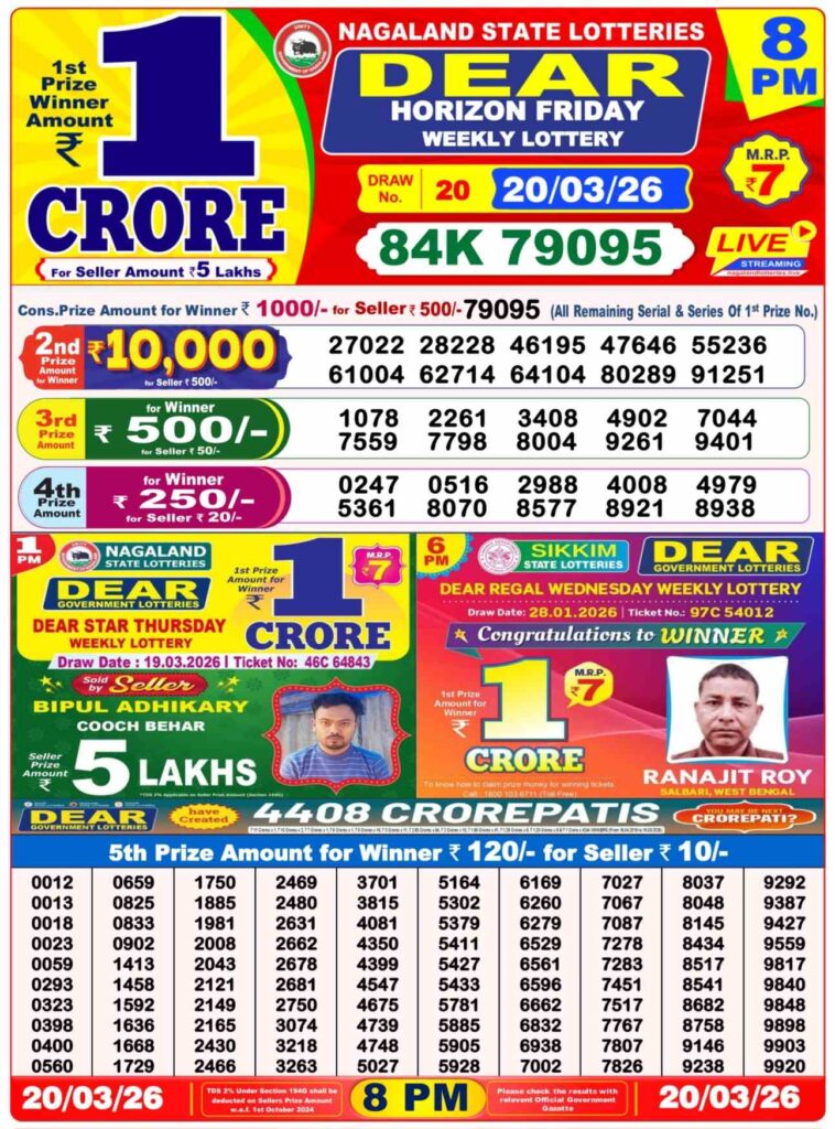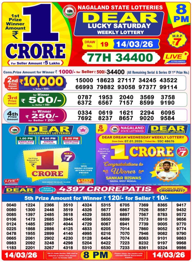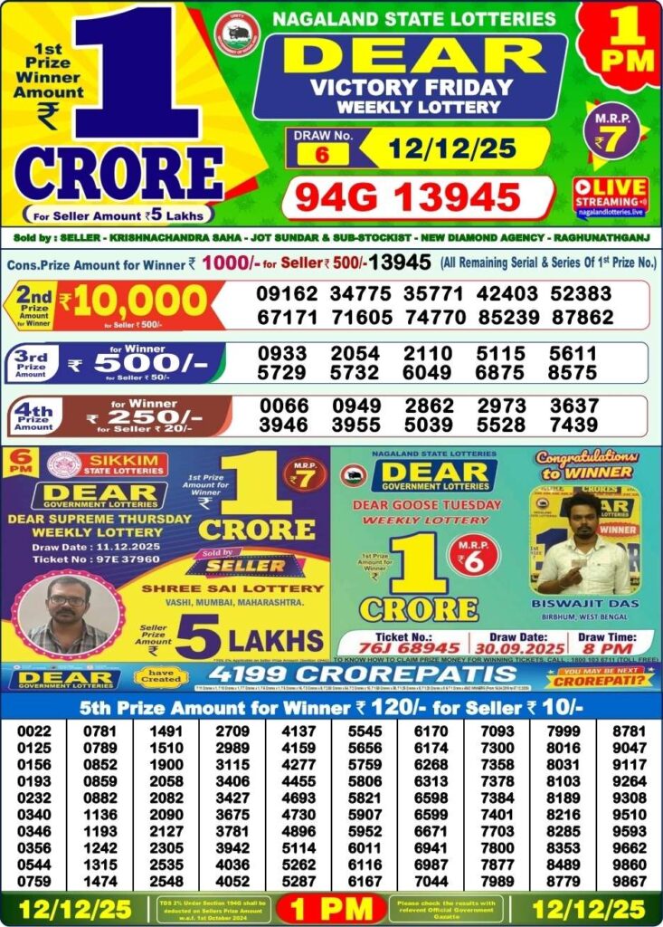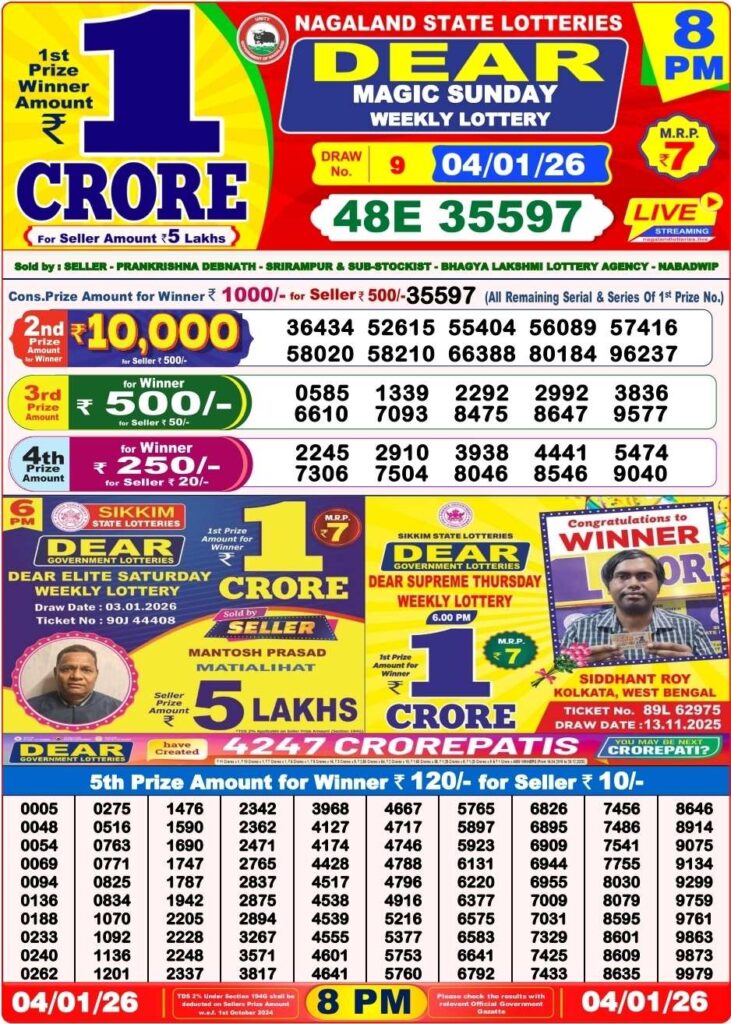 | Lottery Name | Sikkim State Lottery, Nagaland State Lottery, West Bengal State Lottery Sambad |