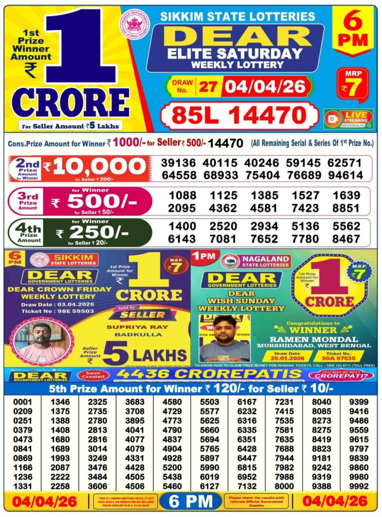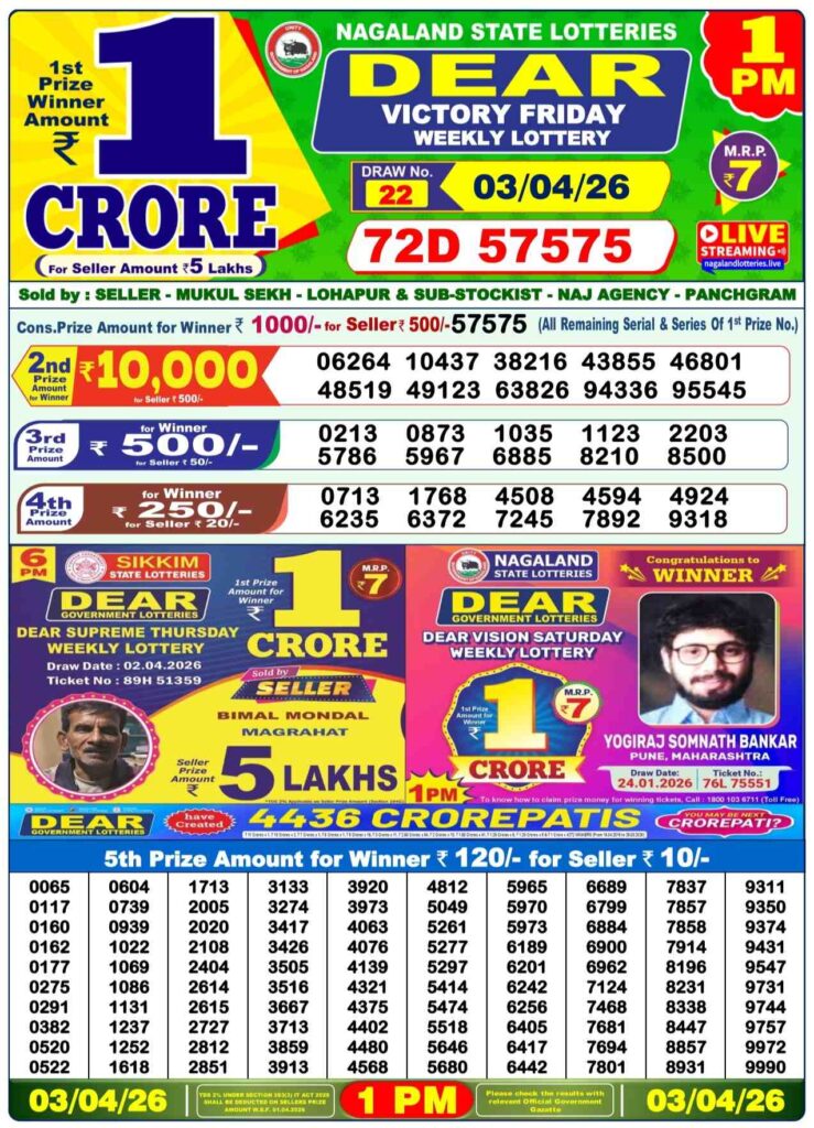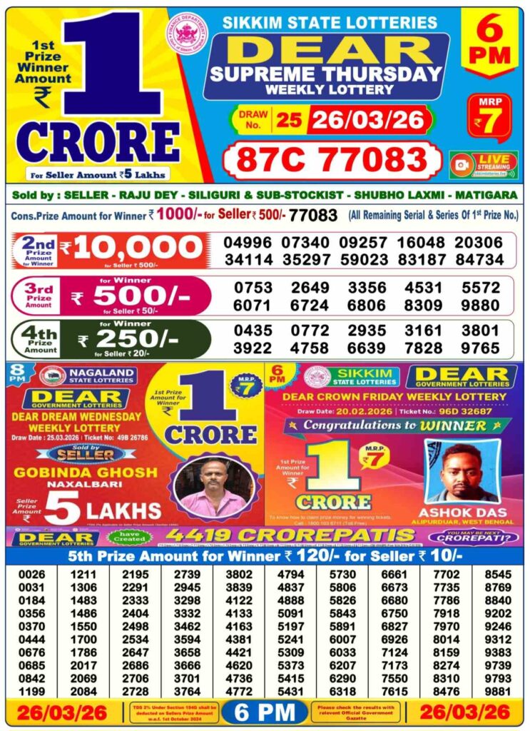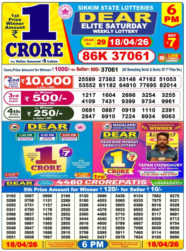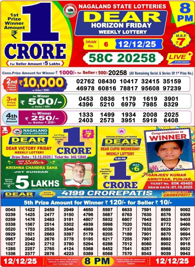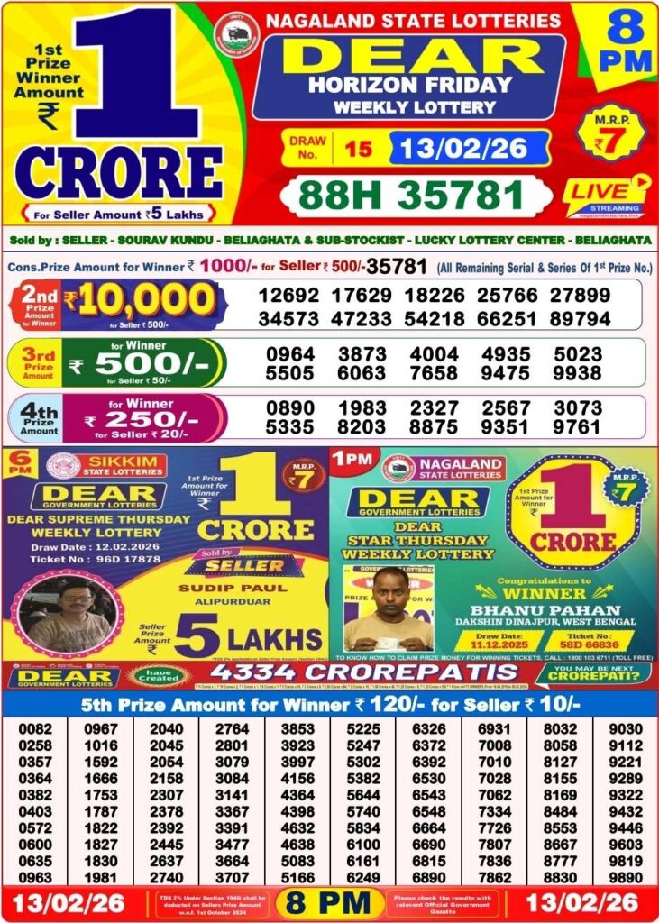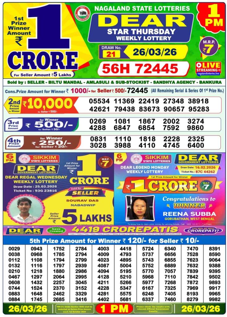 | Lottery Name | Sikkim State Lottery, Nagaland State Lottery, West Bengal State Lottery Sambad |