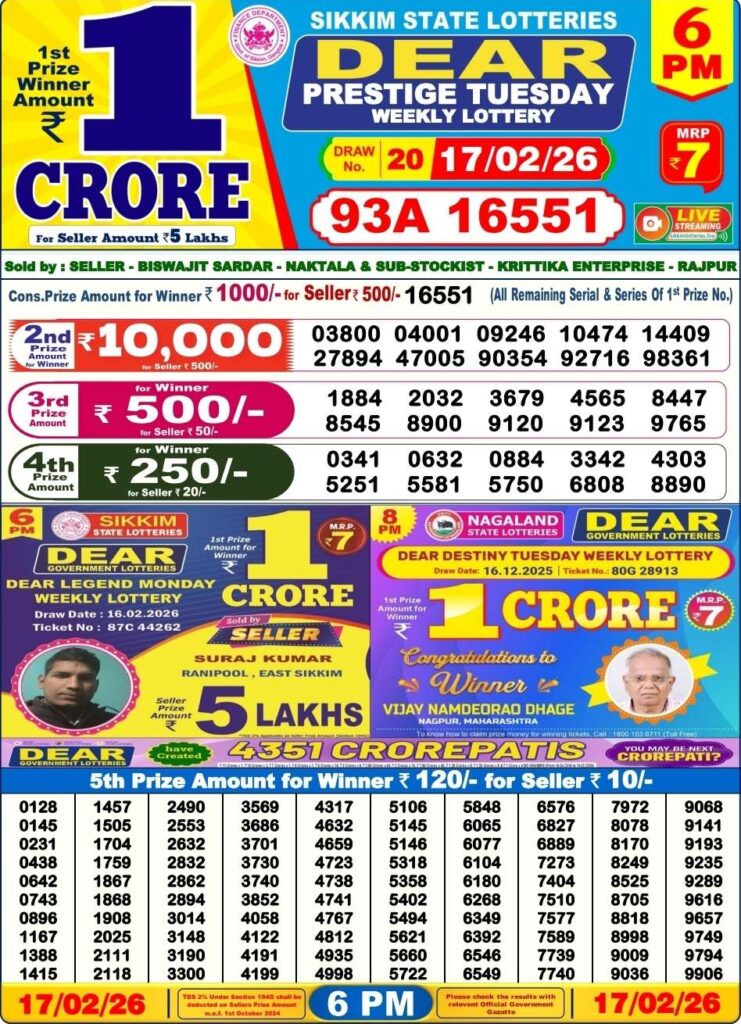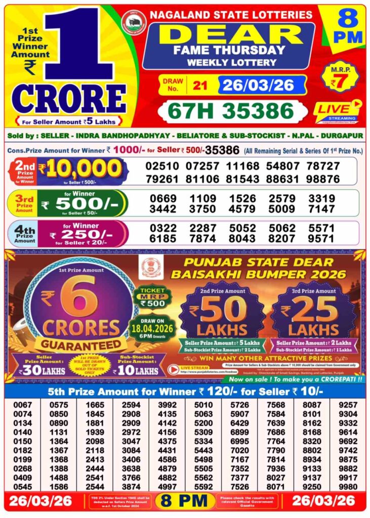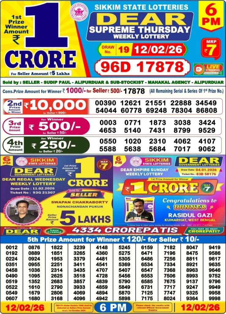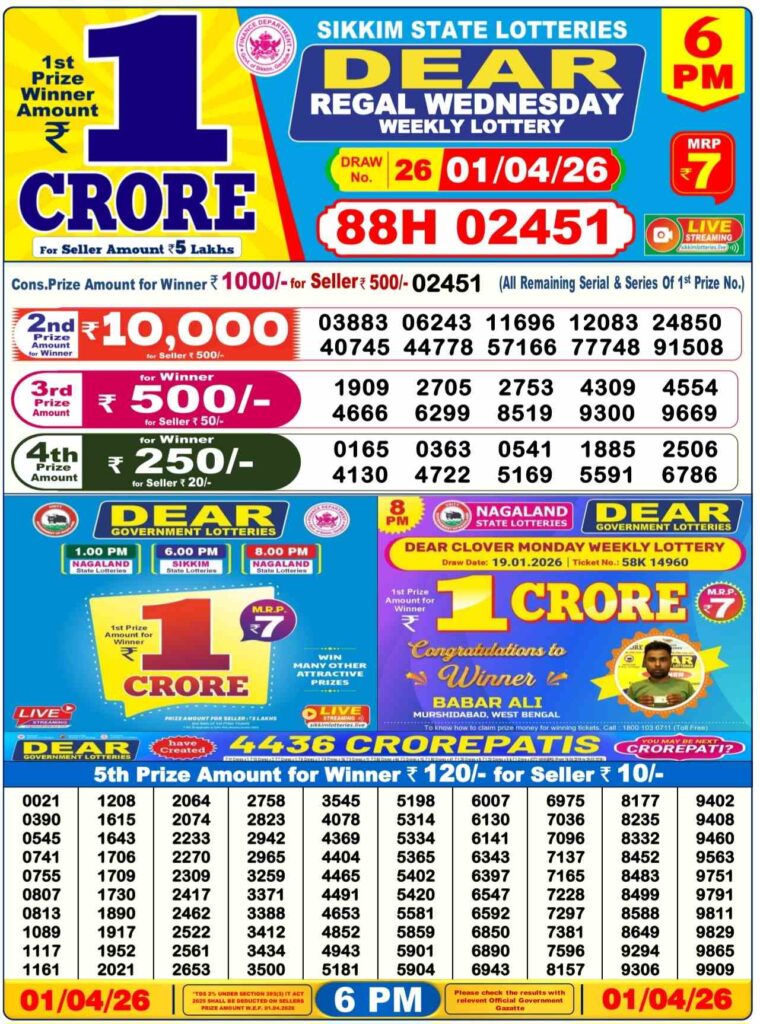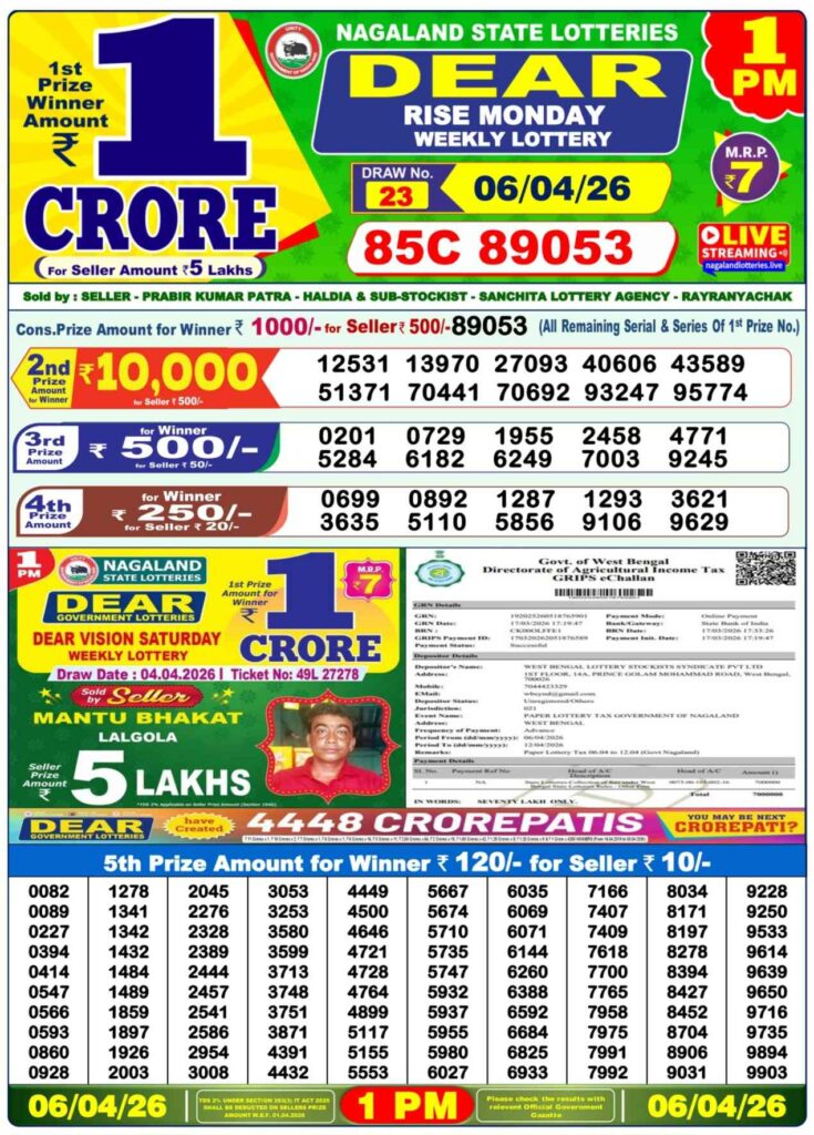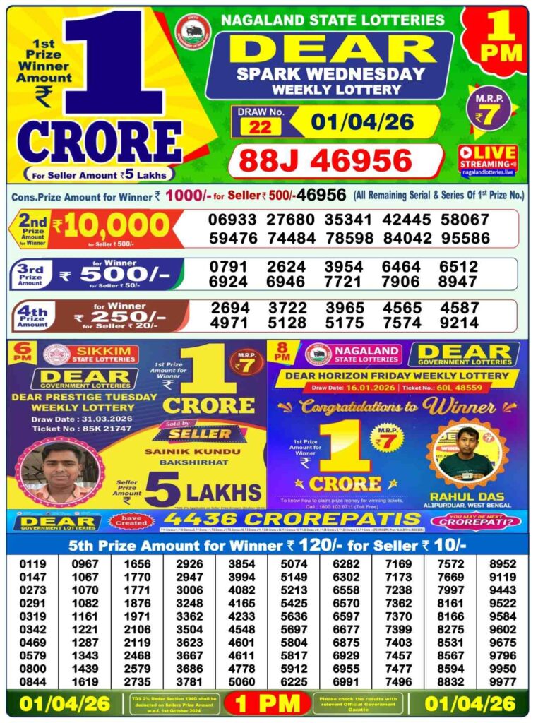 | Lottery Name | Sikkim State Lottery, Nagaland State Lottery, West Bengal State Lottery Sambad |