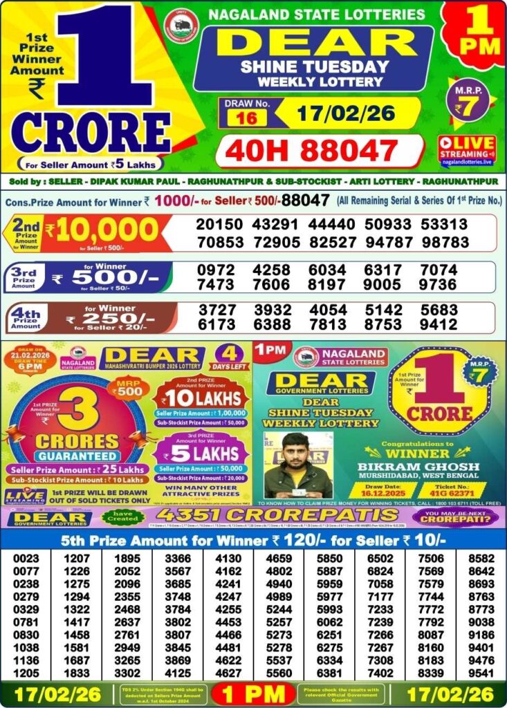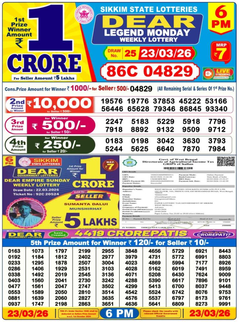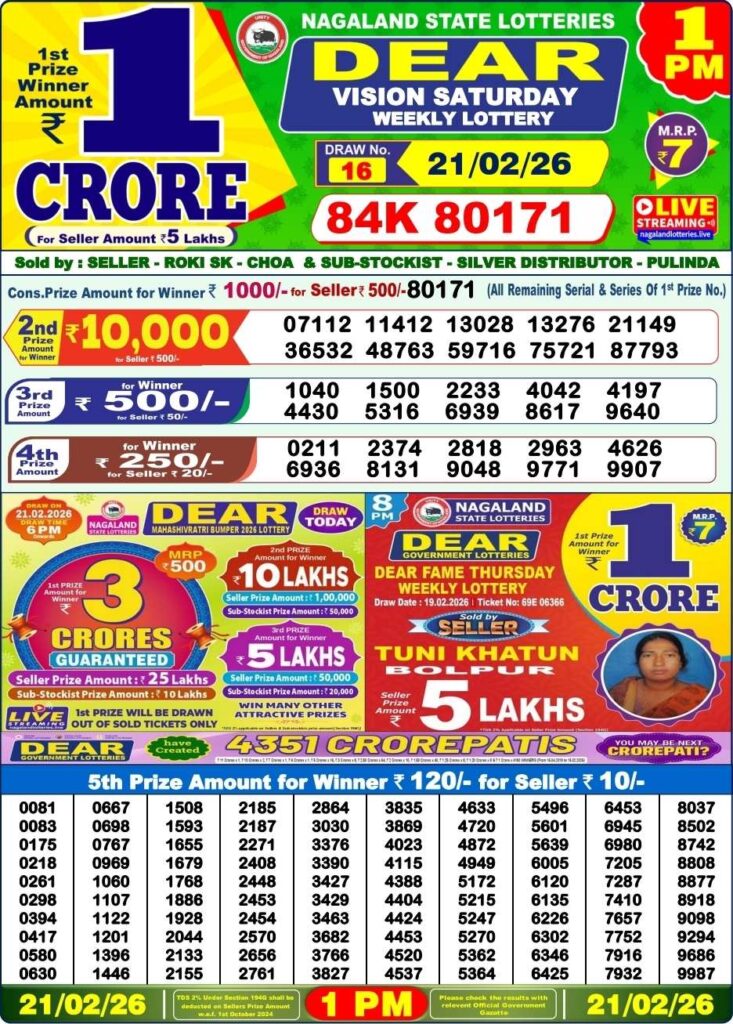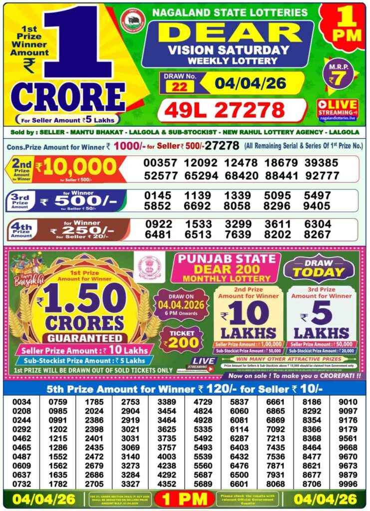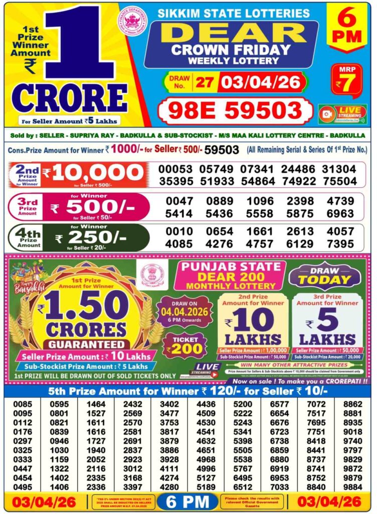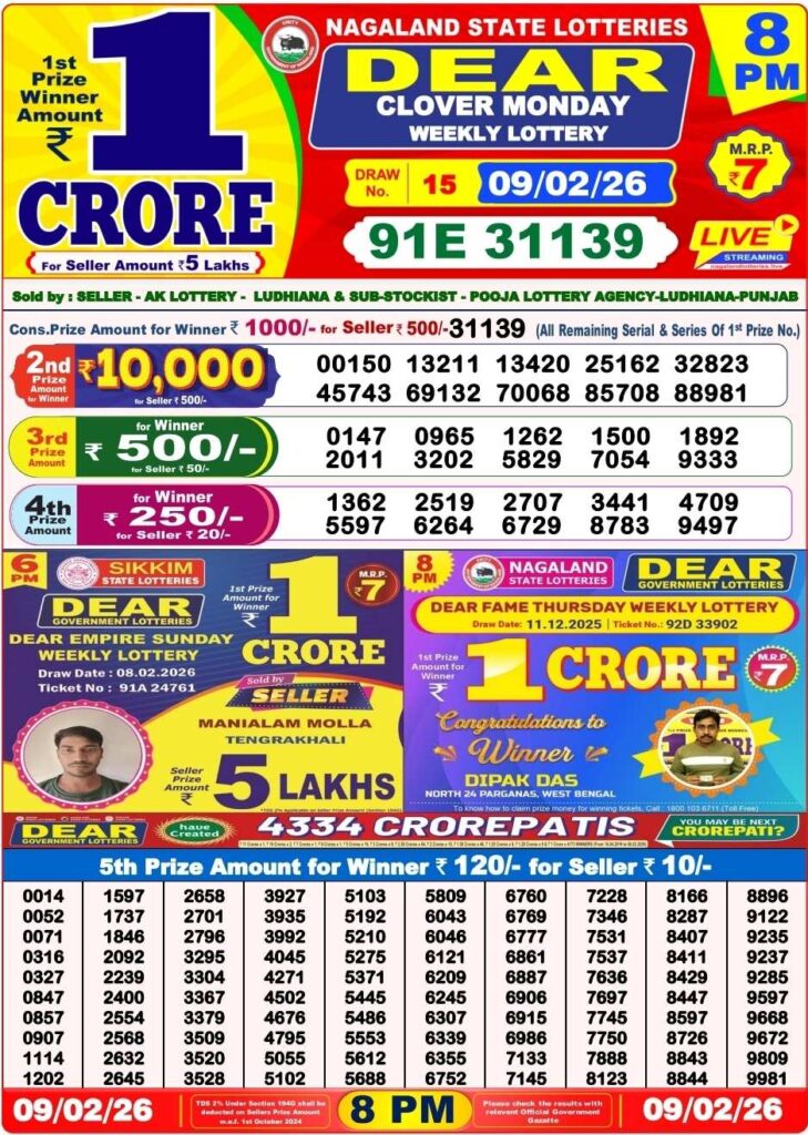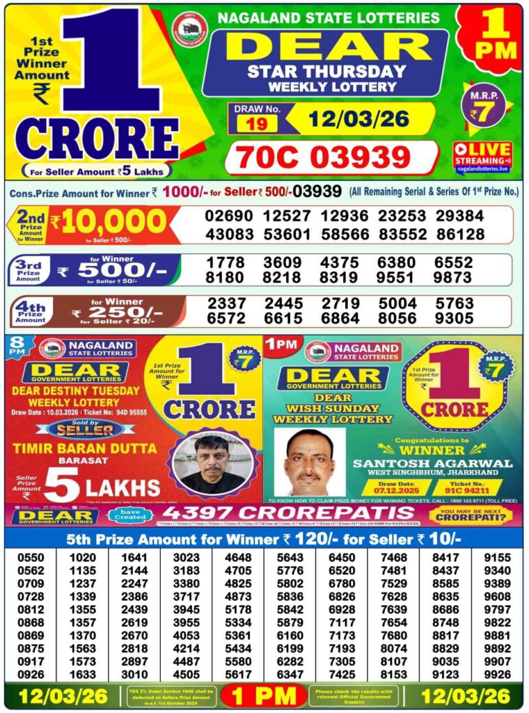 | Lottery Name | Sikkim State Lottery, Nagaland State Lottery, West Bengal State Lottery Sambad |