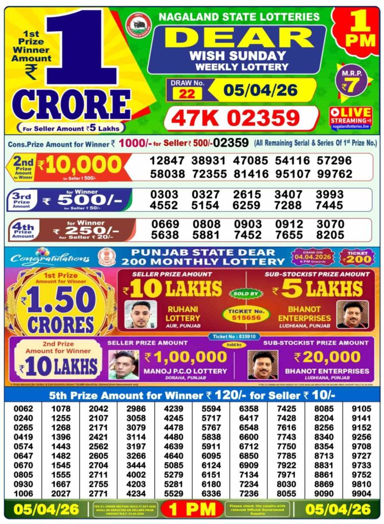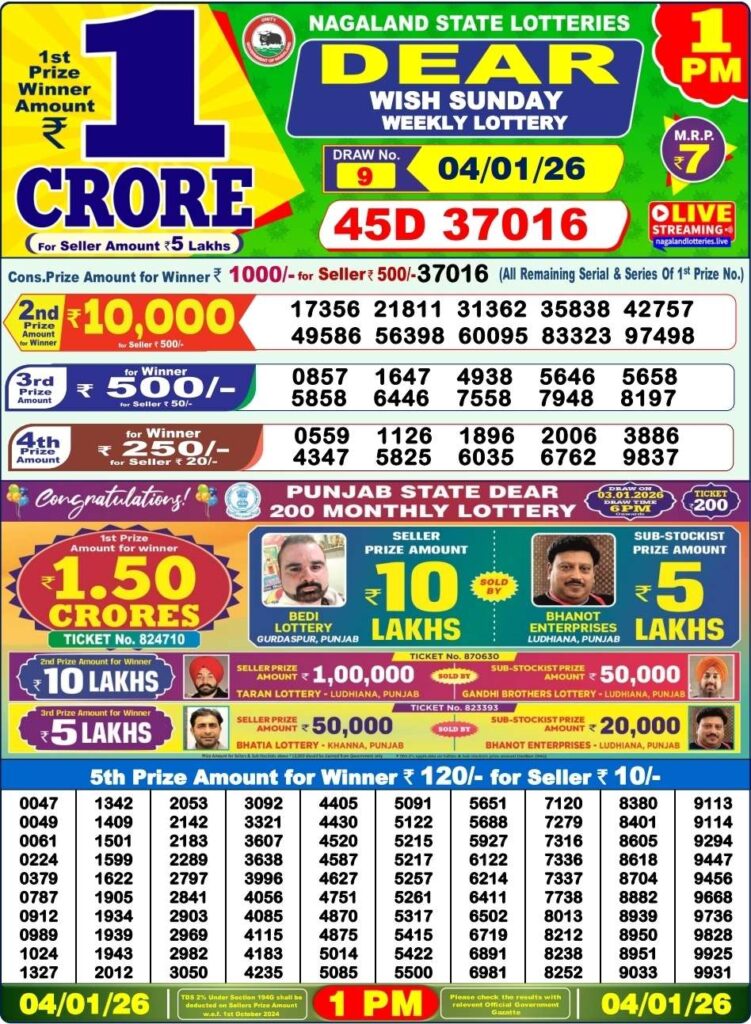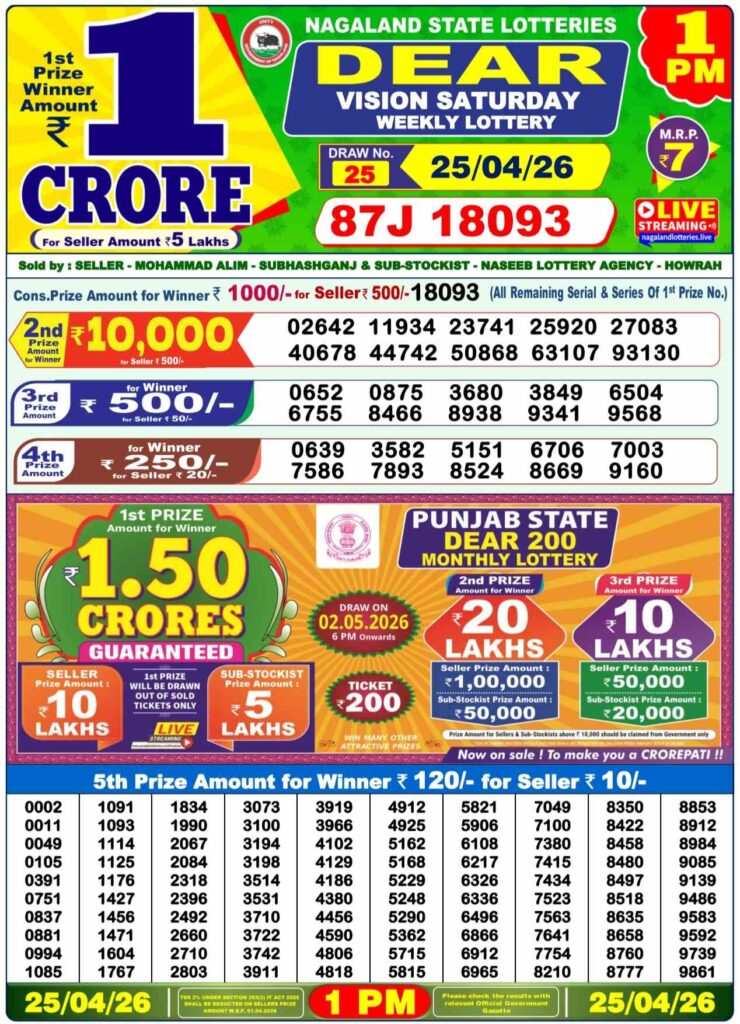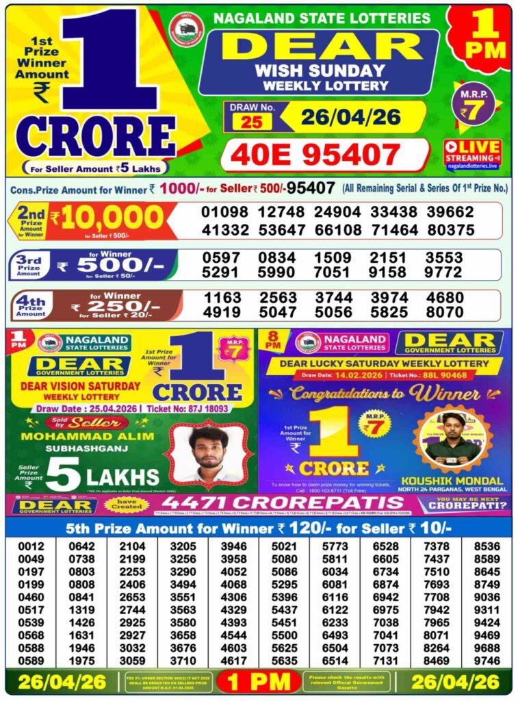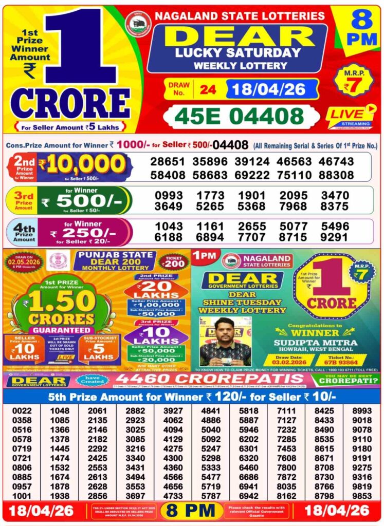 If you’ve purchased tickets in the Nagaland State Lottery Congratulations to us. The winner of the Nagaland State Lottery is expected to be awarded the sum of Rs. 1 Crore.