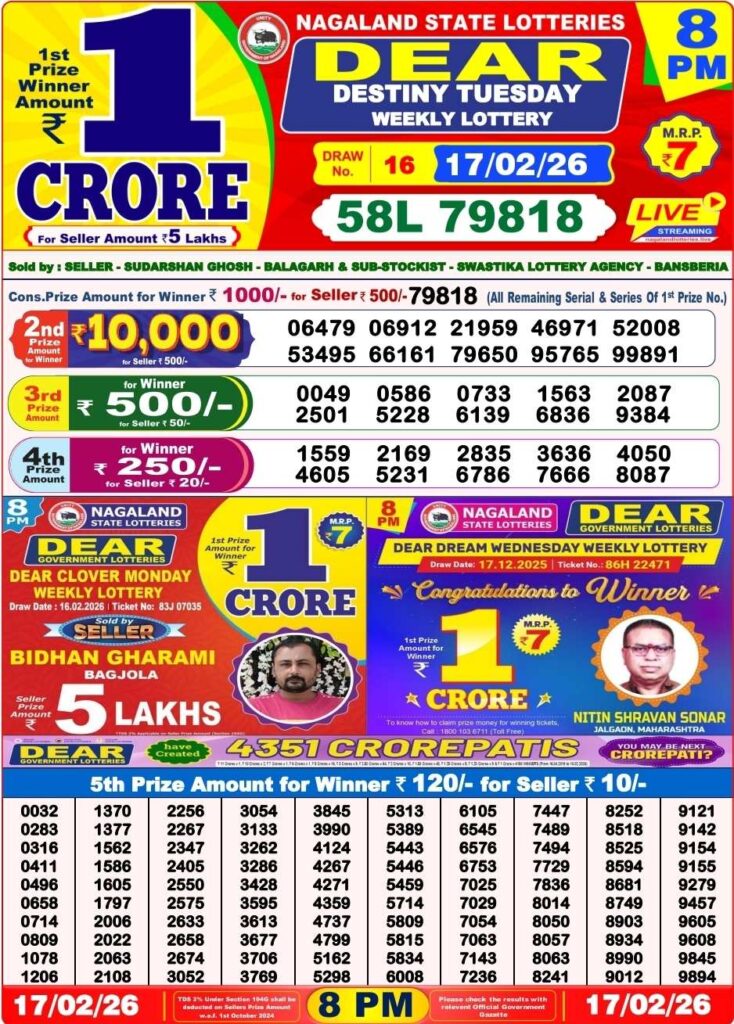 Nagaland State Lottery Sambad Results is released every day until 8 pm. The Lottery Sambad Night Result will be available on this site from 8pm to 8.15 at night.
