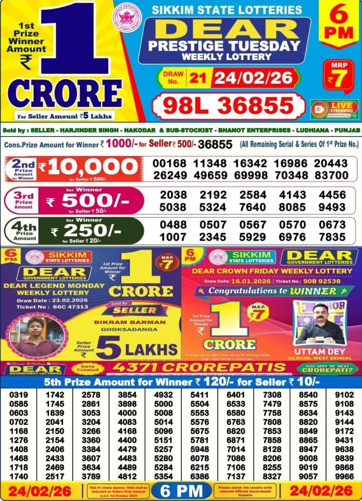 On this site you can download this Sikkim State Lottery Sambad Result between 1 pm and 1.15 pm in PDF format. Sikkim State Lottery 1 pm Lottery Ticket Price is Rs 6.lottery sambad lottery sambad lottery sambad lottery sambad