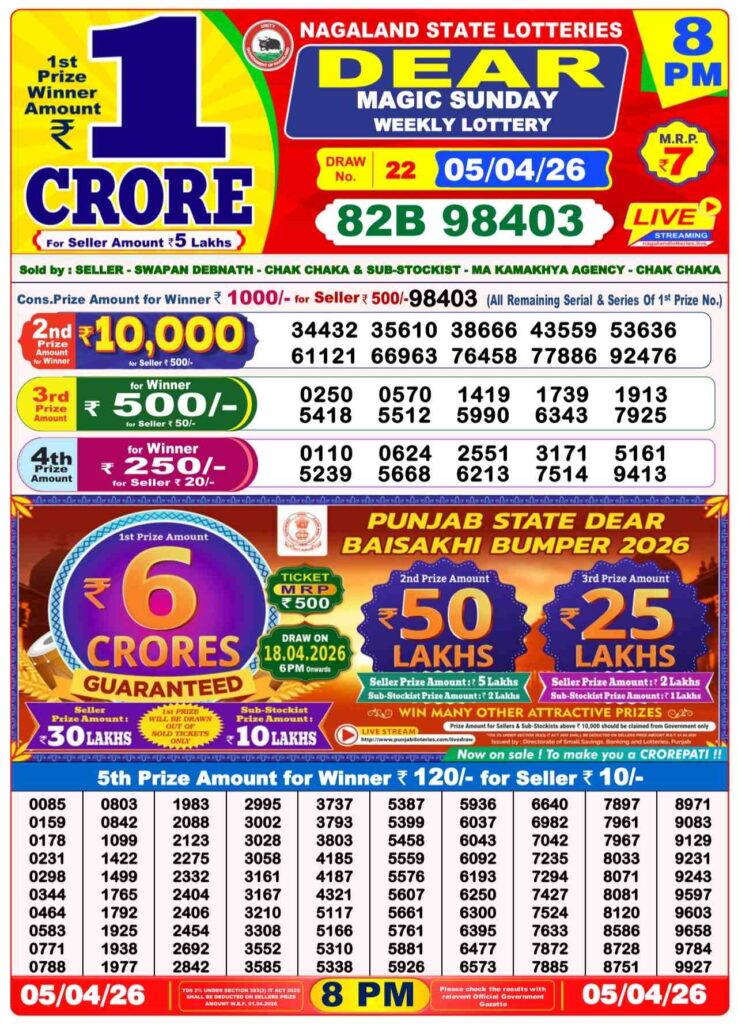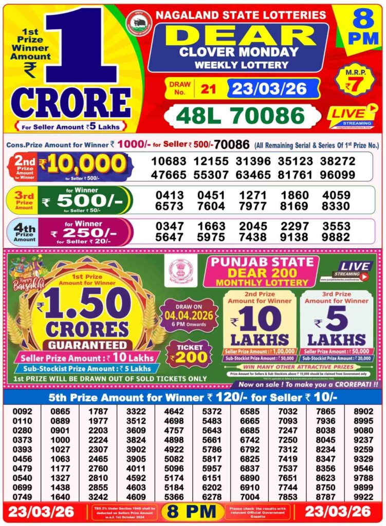 Nagaland State Lottery 8 pm | Lottery Sambad Night Result