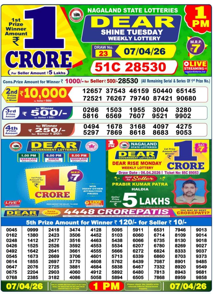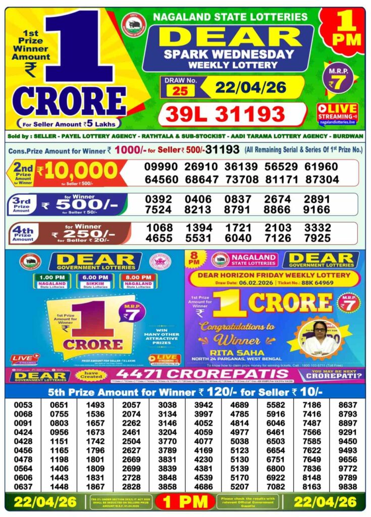 The main benefit in Nagaland State Lottery and West Bengal State Lottery is that the first prize is worth Rs. 1 Crore. If you can win this your life will be prosperous. You can then begin any type of business. That will allow you to pay for the costs of your family.
