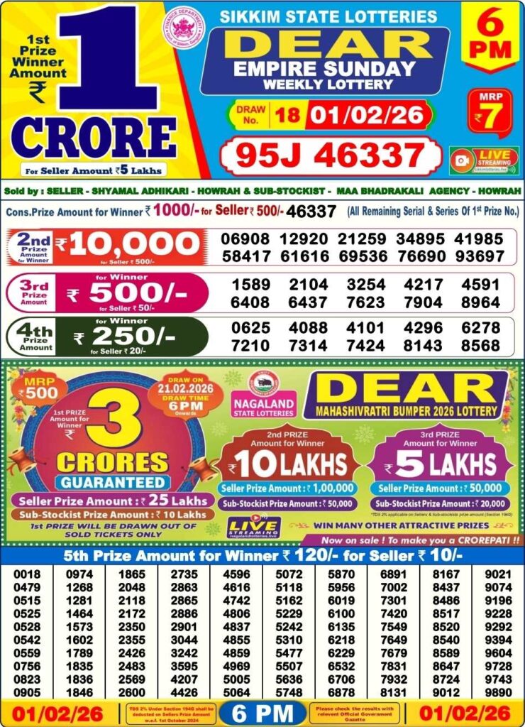 West Bengal State Lottery Result 2.2.2026 Today 6PM Result: Good day my dear friends there you landed at the site which has been known to be as Nagaland state lottery sambad result and dear viewers you alwyas know that all the posts been updated with the most popular and peopels most favourite sambad lottery and you can win the first prize of 1 crore rupees and friends this special post can be udpated with the most lovely and searched West Bengal State Lottery 6pm day result and its the another great morning of Sunday a free holiday for you all and this 7th of December 2025 its days sambad lottery which will be alwyas been knwon to be as West Bengal state lotteries Dear Bangabhumi Bhagirathi and the result will be available at 6:10pm here you can get the chance to win the 1CR rupees an friends we also provided you the most awesome Sikkim state lottery, West Bengal state lottery, Nagaland State Lottery and this site known as Lottery Sambad, Nagaland state lottery and here you also gets the Lottery Sambad Live Draw and Lottery Sambad Old Result.